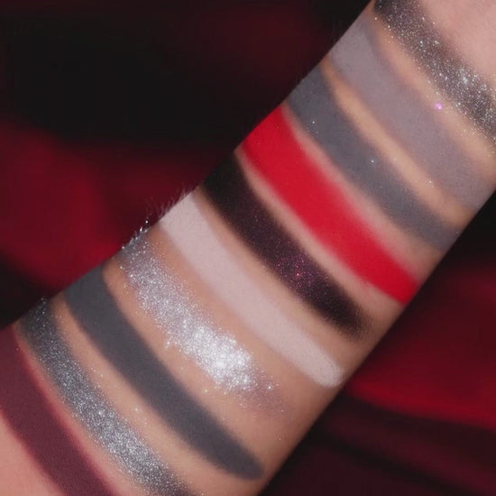 Whether you're crafting a vampy glam, a clowncore aesthetic, or a dark romantic smoky eye, this palette delivers buildable intensity, smooth blending, and an uncompromising edge. Its color story is inspired by gothic urban decay, punk attitude, and dark futuristic rebellion.